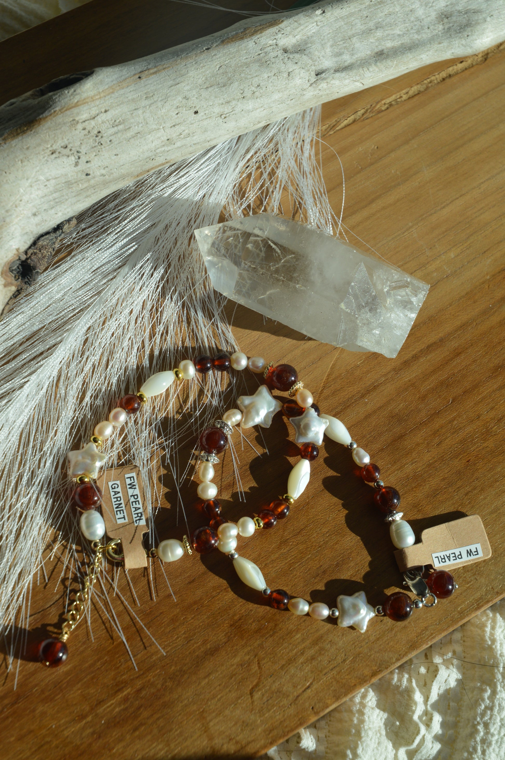 - Hessonite Garnet + Freshwater Pearls